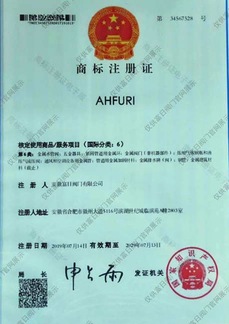 富日商標(biāo)證書